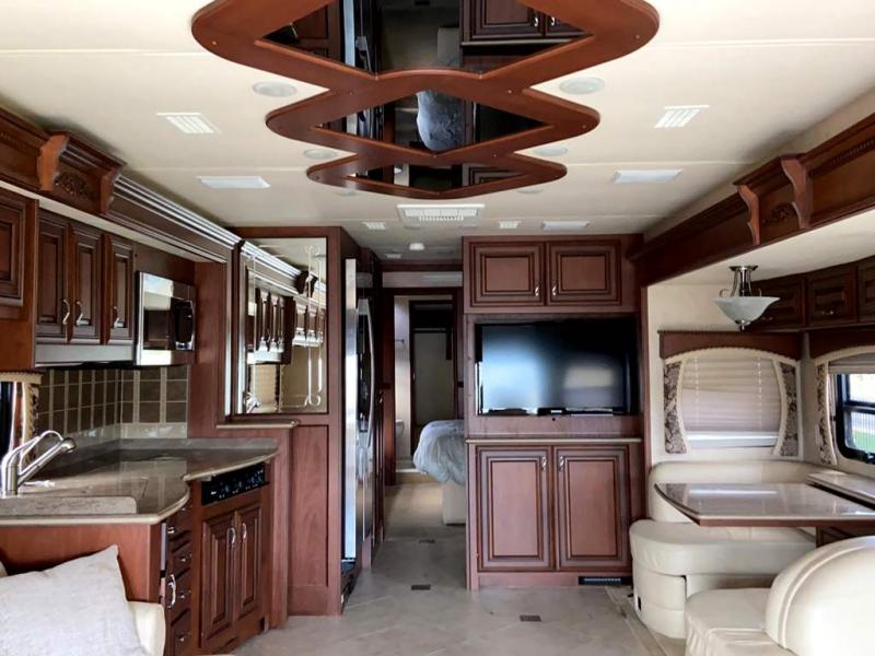 Lots of cabinet space and L-shaped kitchen cabinet with Corian tops. Gold Ribbon full body paint. The Anthem is luxuriously equipped with a JBL premium audio tuned 360-watt DSP amplifier and 11 speakers in 6 locations including subwoofer.